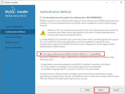 対応できていないクライアントやプラグインがあるので、特に指定がなければ、UseLegacyを指定し「Next」をクリックします